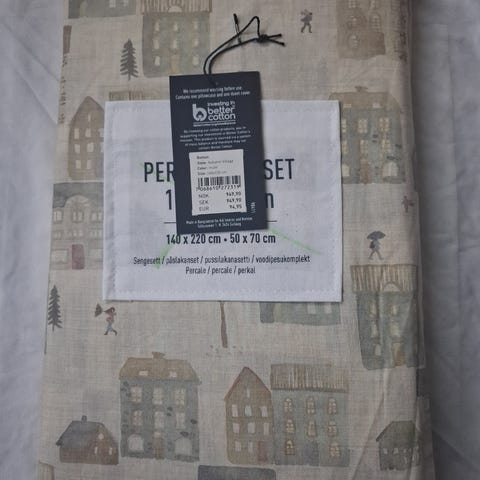 Lakenet er laget av 100 % bomull, ifølge vaskelappen. Størrelsen er 40x80 cm, egnet til mindre madrasser som for eksempel sprinkelseng eller vogn, avhengig av mål. Fargen er hvit. Vaskes separat fra mørke farger, etter anvisning på vaskelappen.