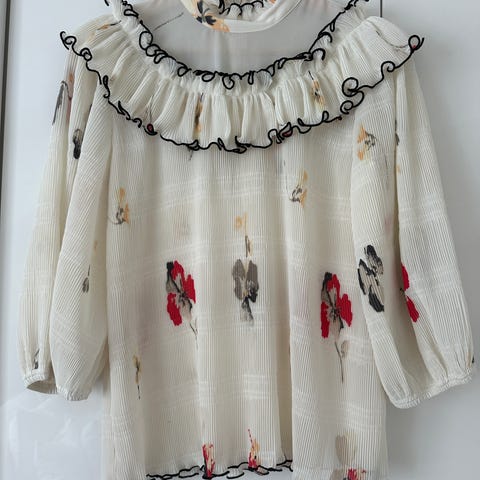 Unik vintage bluse med ekstra stor krage. Minner litt om Ganni sine bluser. Sjekk ut mine andre annonser. Kvitter meg med halve klesskapet nå. 🦊🦝🐱