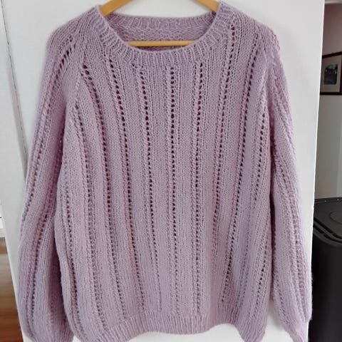 Hjemmestrikket genser i str L. Strikket i Viking sportsragg (60% ull).