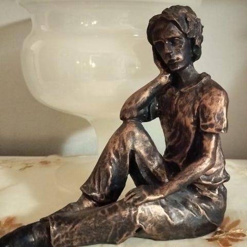 Dekor til barnerommet, bokhyllen. Søt liten jente i keramikk. Hel og pen . 9 cm høy. Hentes eller sendes. Har flere annonser.