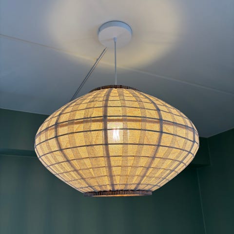 Glasslampe fra IKEA med håndlaget skjerm fra Studio Bazar
