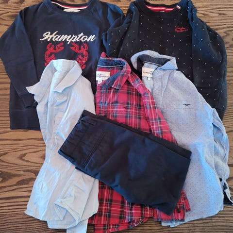 Nydelig marineblå bukse med beige dressjakke 🥹 str 110. Hvit skjorte og blåe bukseseler.