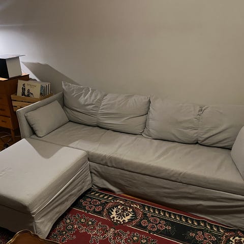 Møbelet er i god stand og fremstår pent brukt. Avtakbar ryggpute og rund sidepute følger med. Stabil konstruksjon og behagelig å både sitte og ligge på.