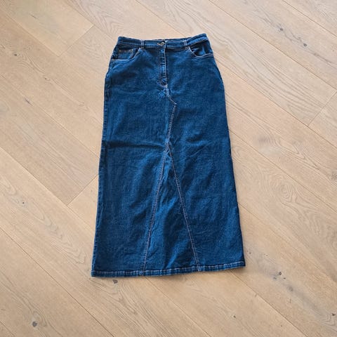 Soyaconcept denimskjørt for dame i størrelse M. Skjørtet er i blå denim og har lengre passform. Det har lommer på sidene og bak, samt splitt bak for bedre bevegelse. Materialet er denim, som gir et robust og klassisk uttrykk. Passer til hverdagsbruk og kan kombineres med ulike topper og sko.