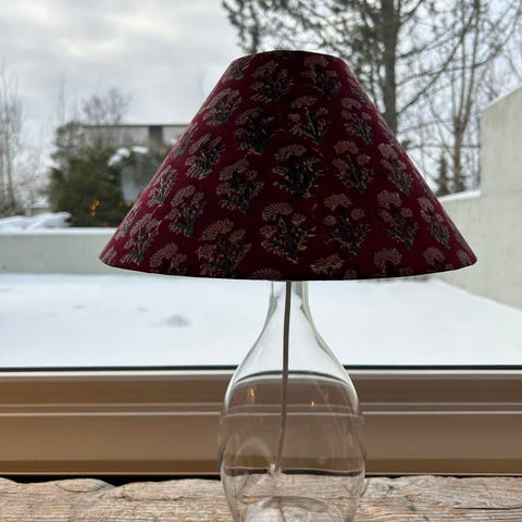 Glasslampe fra IKEA med håndlaget skjerm fra Studio Bazar