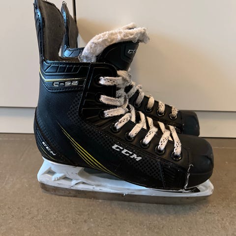 CCM C35 ishockeyskøyter for barn i størrelse 28. Modellen er laget for ishockeybruk, med svart yttermateriale og hvit innvendig polstring for komfort. Skøytene har lisser for justerbar passform og stålklinger som gir godt feste på isen. Egner seg til barn som skal bruke skøytene til ishockey eller generell skøyteaktivitet på is.
