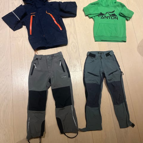 Selger en klespakke til barn i størrelse 128 (Helly Hansen buksa er i str. 122, men stor i størrelsen og brukt sammen med jakker i str. 128).