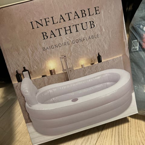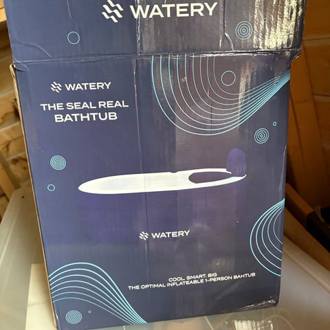 Sammenleggbart badekar i hvit plast, egnet for voksne. Badekaret har støtteben og ramme i metall for stabilitet, samt høy rygg som gir støtte når man sitter. Det kan brukes både innendørs på bad og utendørs på terrasse eller i hage, for eksempel der det ikke finnes fastmontert badekar. Når det ikke er i bruk kan badekaret foldes sammen for enklere lagring og plassbesparelse. Oppbevaringsveske med håndtak følger med.