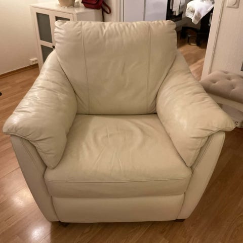Skinnsofa med sovesofa. Stor stol i samme selges samlet for 1000kr ved hurtig henting