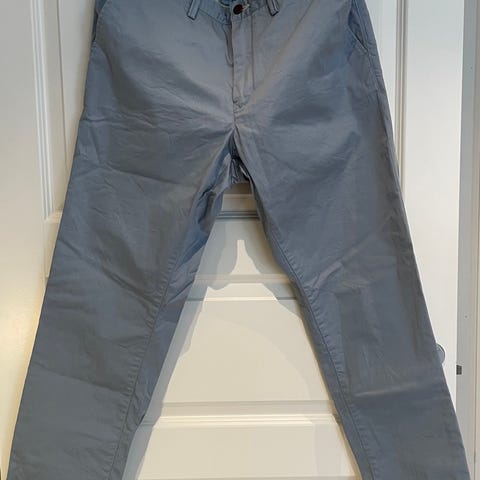 Jacob Cohën Jeans i størrelse M med midjemål W33. Fargen er grå, og materialet er bomull. Jeansene har klassisk design med lommer og knappelukking. Og karakteristisk brodert J i høyre bukselomme.