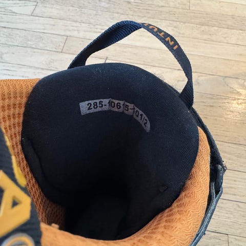 Scarpa Maestrale RS alpinstøvler i hvit, svart og oransje med gule spenner. Støvlene har fire spenner og powerstrap øverst for god justering rundt leggen. Modellen er laget for topptur og frikjøring, med gåfunksjon i skaftet for lettere gange oppover og mer bevegelsesfrihet. Innvendig lengde er merket 275 mm. Passer til bruk med kompatible topptur-/randoneebindinger. Egner seg til alpint og toppturer i variert terreng.