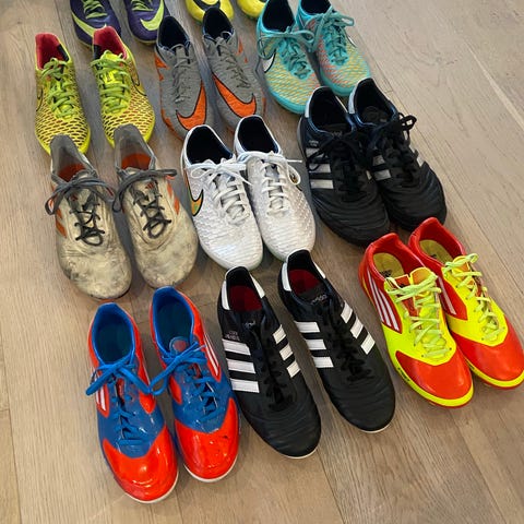 Fotballklær og fotballsko for barn fortrinnsvis i størrelse 10-12 år. Pakken inneholder ulike plagg egnet til fotball, som treningstøy og tilbehør, samt et par fotballsko. Klærne er tilpasset barn rundt størrelse 146 og passer til både trening og kamp. Fotballskoene er str 38 og til innendørs bruk.