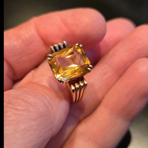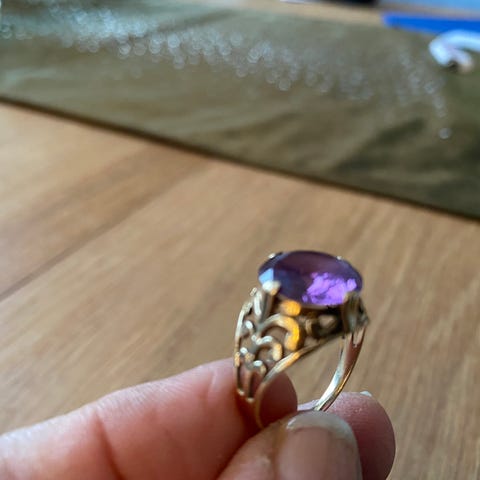 585 karat gullring. Stein ametyst. Fast pris.
