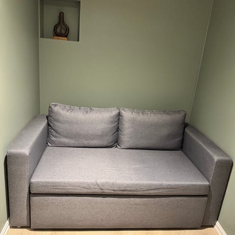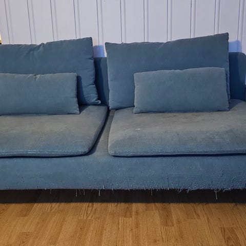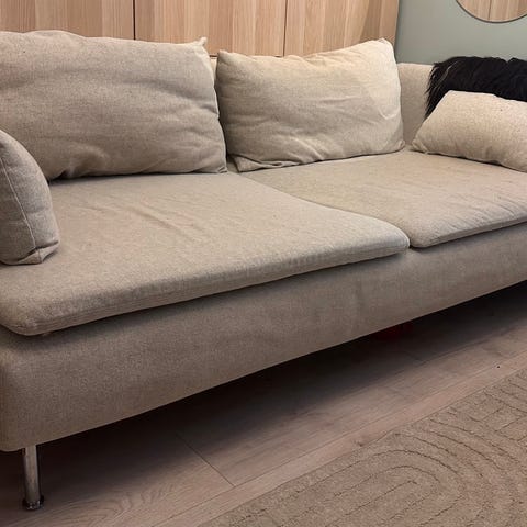 Soderhamn treseter sofa. Godt brukt og kunne hatt godt av nytt trekk. Vært både hund og katt i sofaen.
