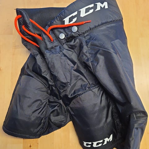 CCM 9060 hockeybukse for ishockey i juniorstørrelse Small. Buksa er i blå farge og har justerbart belte og snøring i livet for tilpasning. Polstret hofte-, lår- og ryggbeskyttelse gir støtdemping ved fall og taklinger. Glidelåser nederst på bena gjør det enklere å ta buksa av og på over skøyter. Egnet for ishockeyspill for juniorer som trenger grunnleggende beskyttelse under trening og kamp.