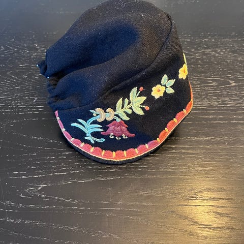 Ubrukt hatt og lue med pins. Kan sendes mot porto