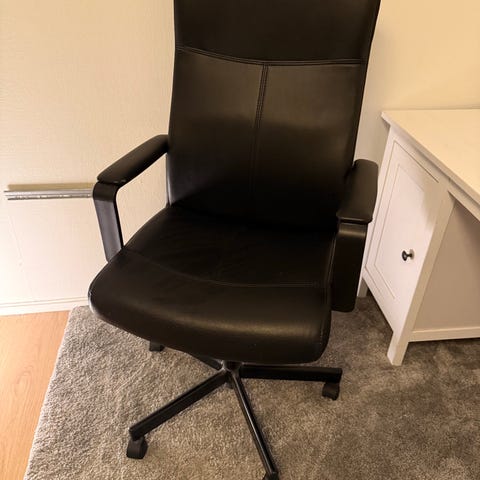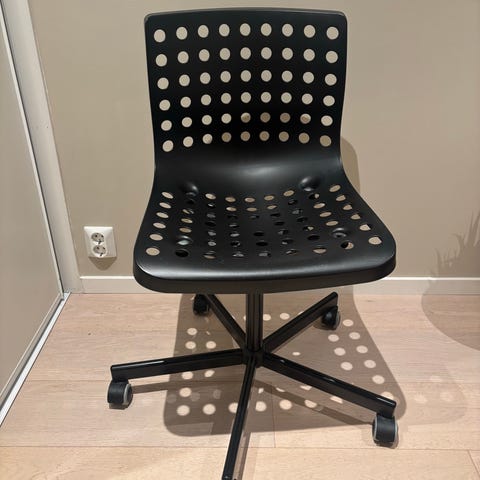 Selger en Flintan kontorstol fra IKEA, sort med armlener. Den er brukt, men fortsatt helt fin i bruk. Trekkene er vasket, stolen er demontert, og alle skruer ligger sortert etter delene de hører til.