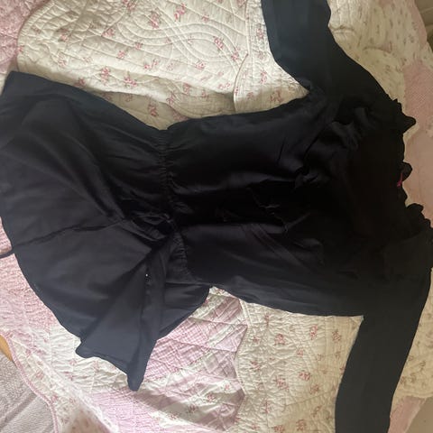 Kjolen har padding på skuldrene og er litt mere utringet i ryggen enn i front. Lukkes med glidelås i ryggen. Kan passe str S-M