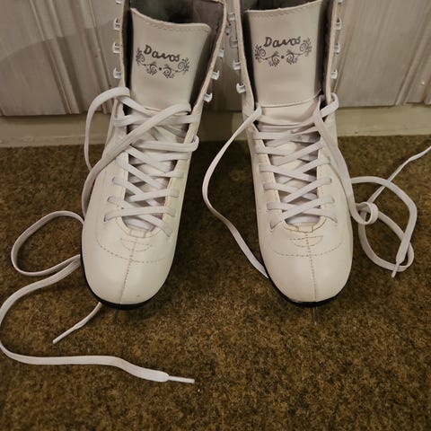 Kosa Dancing skøyter i størrelse 40 (Små i str. Passer 38-fot). Klassiske hvite skøyter med god ankelstøtte og fleksibel snøring.