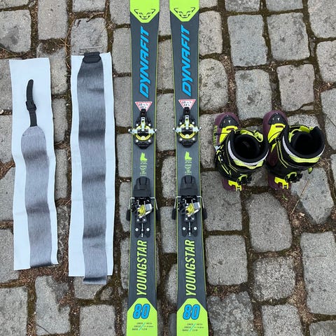Dynafit ski 130cm med bindinger, støvler i 36/37 og feller