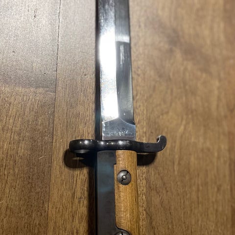 Knivbajonett i relativt god stand men ikke nummerlik.