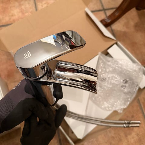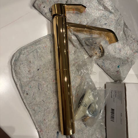 VikingBad Veni servantbatteri i gullfarget utførelse. Ettgreps blandebatteri beregnet for montering på servant. Leveres med tilhørende monteringsdeler og fleksible tilkoblingsslanger, som vist på bildene. Passer til standard baderomsservanter med hull for armatur. Utført i metall med overflatebehandling i gullfarge.