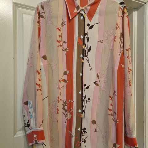 Finn Karelia bluse str. 42 (L) – elegant mønstret skjorte