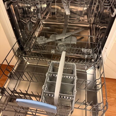 Asko nedre kurv til oppvaskmaskin, modell DW16.2. Kurven er en original reservedel fra Asko og er beregnet for plassering nederst i oppvaskmaskinen. Den har hjul for enkel inn- og uttrekking, sammenleggbare tallerkenstøtter og grå plastdetaljer. Passer til Asko DW16.2 (496569/01 D8557XXLFI) oppvaskmaskin og eventuelt andre kompatible modeller som bruker samme type nedre kurv. Egner seg til utskifting av defekt eller slitt originalkurv.