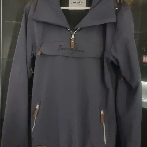Selger Twentyfour anorakk i varm oransje farge, siden den no har blitt for stor