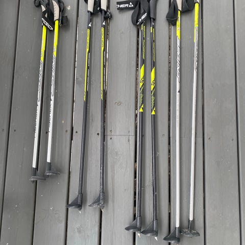 Rossignol langrennsstaver 90 cm. Har også diverse Fischer langrennsstaver i lengder på 75 cm til 100 cm. Kr. 75 pr. par.