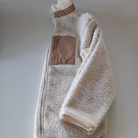 Pent brukt, mykt pysjsett, langermet overdel og bukse. Buksa har snor i livet og sidelommer, genseren har også snor i bunn og en liten lomme i front. Overdelen er i størrelse L, men er brukt av en som bruker Small. Det er også buksa, der er lappen klippet bort, men mener den er i Medium.