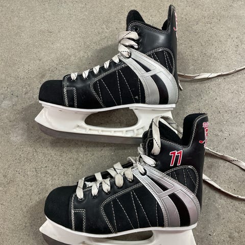 Skøytene er utformet for ishockey, med snøring for justering av passform og støttende ankelparti. Blad i metall med plastkappe rundt hæl og såle for stabilitet. Egnet til bruk på isbaner til trening eller fritidsbruk i ishockey.