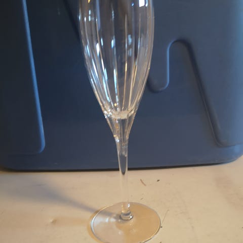 Orrefors champagneglass i klart glass. Glasset har høy stett og smal, avlang klokke som egner seg til servering av musserende vin og champagne. Passer til bruk ved måltider, selskap og andre anledninger der det ønskes servering av bobler i stilrene glass.