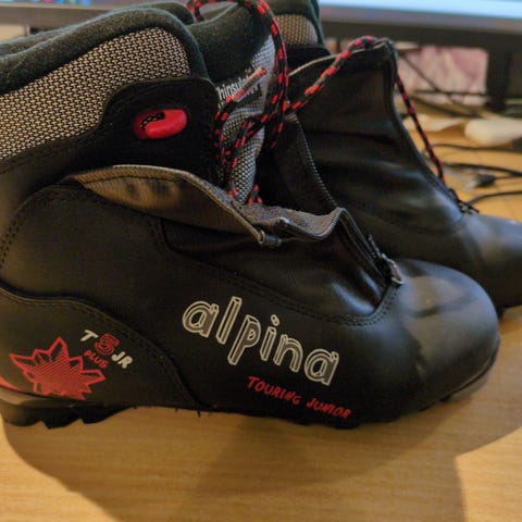 Alpina Touring Junior T5 JR langrennsstøvler for barn i svart med røde detaljer.