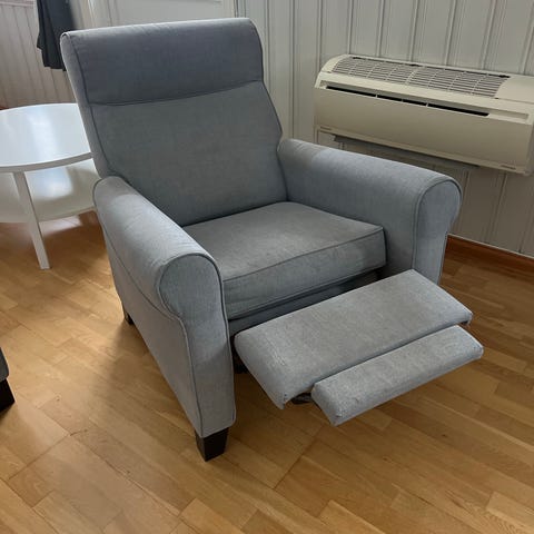 Den andre har en sprekk i armlenet, men fungerer som den skal og er fortsatt stabil i bruk.