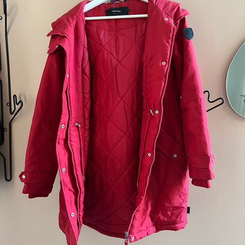 Kari Traa ytterjakke for dame i størrelse M. Jakken er laget i polyester og kommer i en rød farge. Modellen har hette, glidelås i front med knappestolpe, justerbar snøring i livet og flere frontlommer. Egnet som annet yttertøy til hverdagsbruk og utendørsaktiviteter.