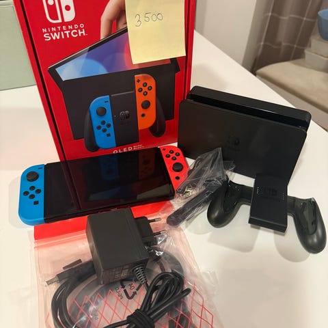 Meget pen Nintendo Switch (2022-modell) 🎮 Denne er nesten ikke brukt, kanskje maks 5 timer 🤩 Alt fungerer som det skal og alt følger med! Inkludert hdmi kabel og originalt eske 🖤