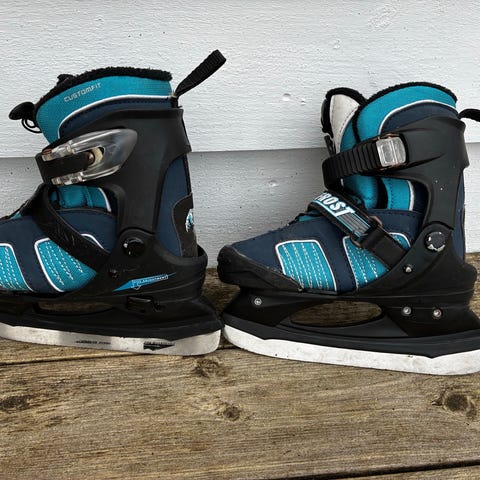 Slåtthaug OX skøyter for barn i regulerbar størrelse 30-33. Kjøpt ny av oss og brukt til to barn, derav noen bruksmerker. Ellers i fin stand.