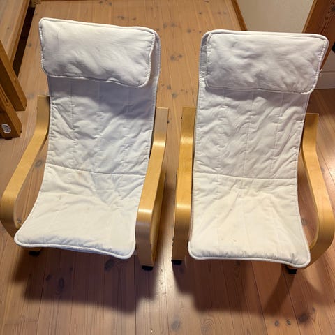 Den ene er mer slitt og falmet i trekket enn den andre.