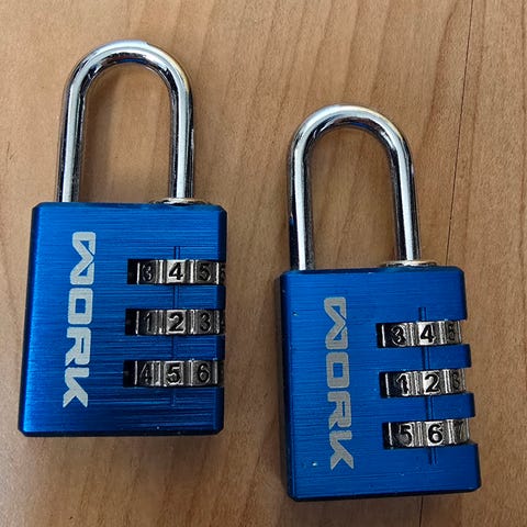 Kombinasjonslås hengelås i rød metall med tresifret kodelås. Låsen har bøyle i metall og justerbar kode. Egnet for bruk på skap, vesker, kofferter eller andre gjenstander der det er behov for enkel låsing med kode i stedet for nøkkel.