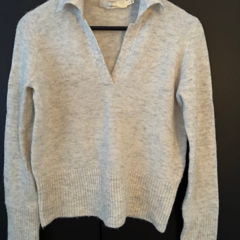 Modellen har korte ermer og høy krage/hals, og fremstår som en løs og komfortabel passform.