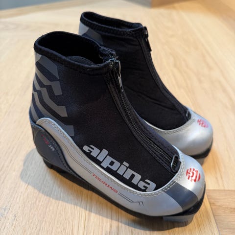 Madshus Butterfly skisko for barn i størrelse 29. svart og hvite med rosa detaljer. Veldig pent brukt, så her er det mye bruk igjen!