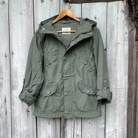 Grønn, grønt, green, nature, Y2k, hette, lommer, glidelås, regulering, knyte, vårjakke, høstjakke, turjakke, techwear, functional, tech wear, 90 tallet,