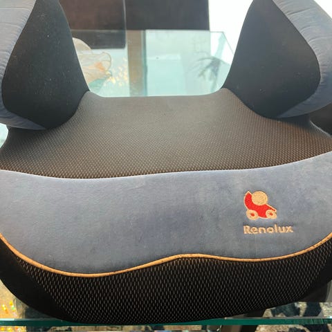 Renolux sittepute bilstol. Sitteputen er i svart og grått stoff med polstrede sidekanter for økt sittekomfort. Den brukes i bil sammen med bilens egen sikkerhetssele for større barn som har vokst ut av småbarnsstol. Egnet som ekstra sittehøyde i baksetet slik at beltet får riktig plassering over hofte og skulder. Stofftrekket er i tekstilmateriale.