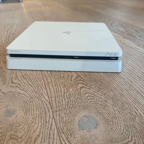 Sony PlayStation 4 Slim spillkonsoll. Konsollen og lader følger med.