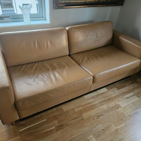 Sømmen i midten er litt åpnet og en liten maling flekk på venstre armlener. Ellers i fin stand.