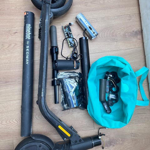 Selve sparkesykkelen er veldig lite brukt. Den har blitt lagret innendørs.