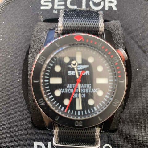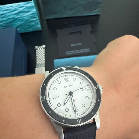 Det tradisjonelle klokkehuset i rustfritt stål, den svarte urskiven og mørk blå nato reim gir et moderne preg på denne vintage-designen.
