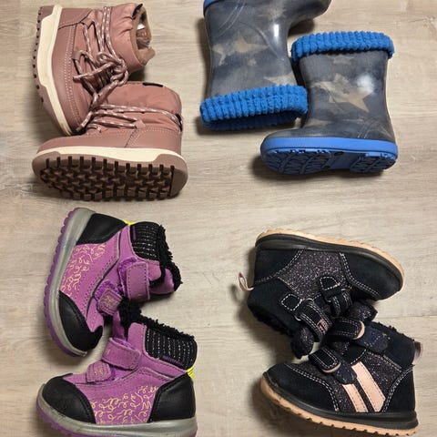 Stormberg vintersko unisex i størrelse 22. Pakken inneholder også mørke støvler med enhjørninger og rosa joggesko. Skoene passer til hverdag og lek ute i all slags vær, og det er gode sko. Brukt i en sesong.