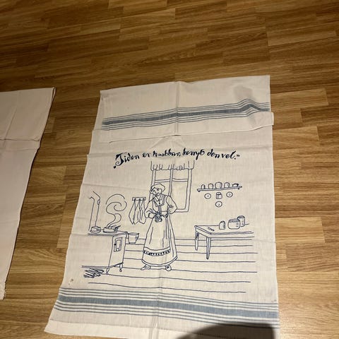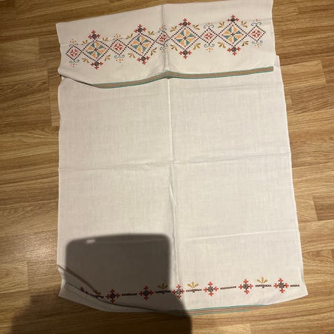 Nydelig engelsk broderi på dette fine . Er en M øverst på håndkle.